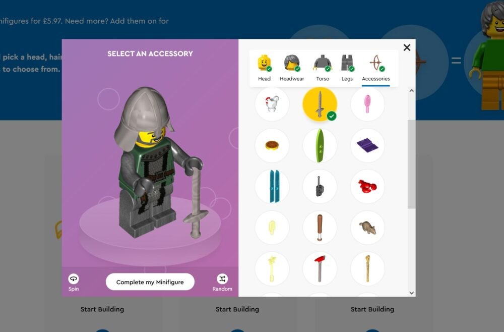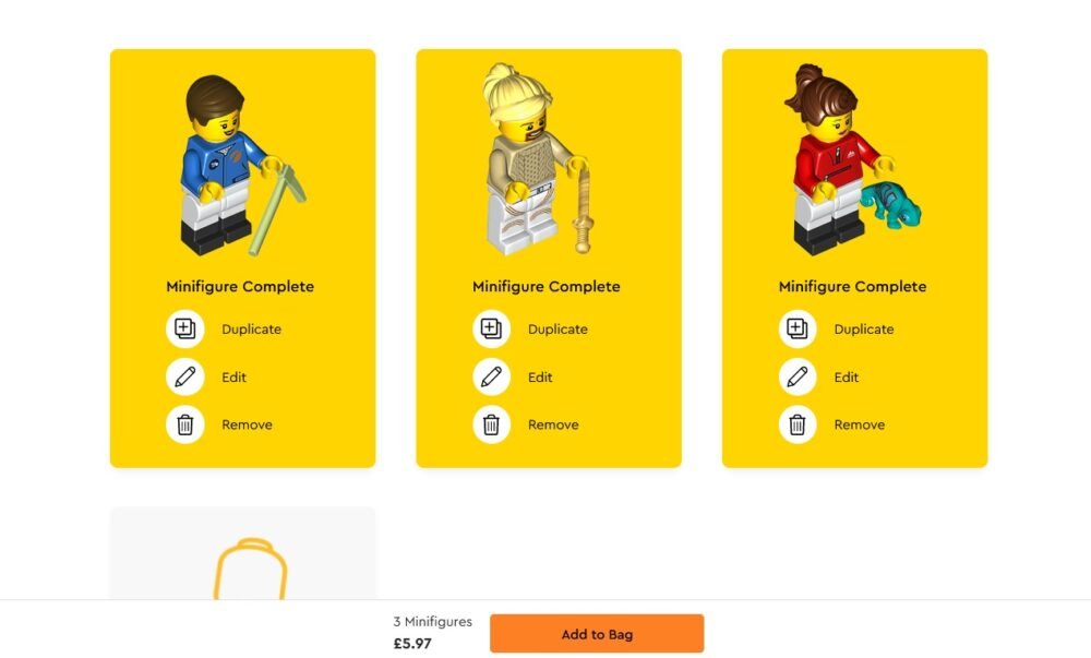 Si vives en Europa o la región Asia-Pacífico, puedes ser de los primeros en tratar el beta de compra en línea con el LEGO Build a Minifigure. Puedes empezar por escoger las partes de tres minifiguras o hacerlo totalmente al azar. La selección de piezas es bastante limitada aún, pero ojalá agreguen más piezas en un futuro. El monto mínimo de compra es tres minifiguras por £5.97 y cada minifigura adicional cuesta £1.99, osea cada minifigura ronda en dos libras siempre.