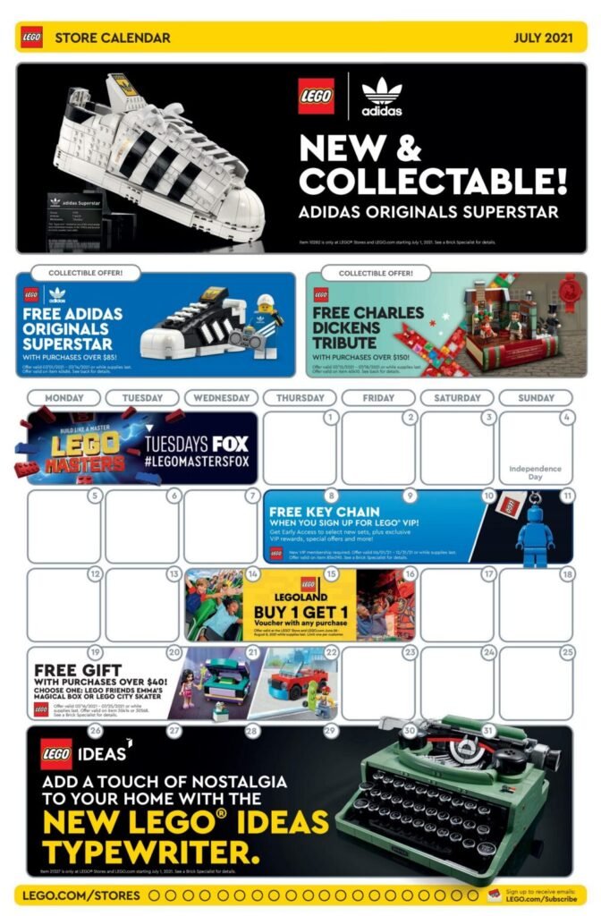 1 al 14 de julio: – Gratis el juego de LEGO Adidas Originals Superstar (40486) en la compra de $85 USD o más, hasta agotar existencias.