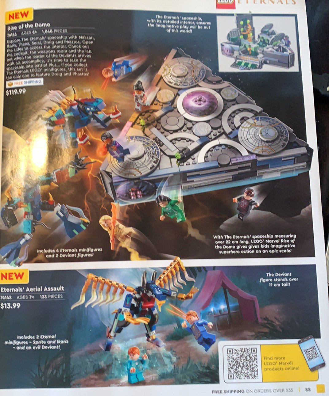 Noten que LEGO tiene ciertas libertades en sus diseños de los sets. No necesariamente significa que estas escenas estarán en la película. La película de Los Eternos tiene su fecha de lanzamiento para el 5 de noviembre. Formará parte de la Fase Cuatro del Marvel Cinematic Universe.
