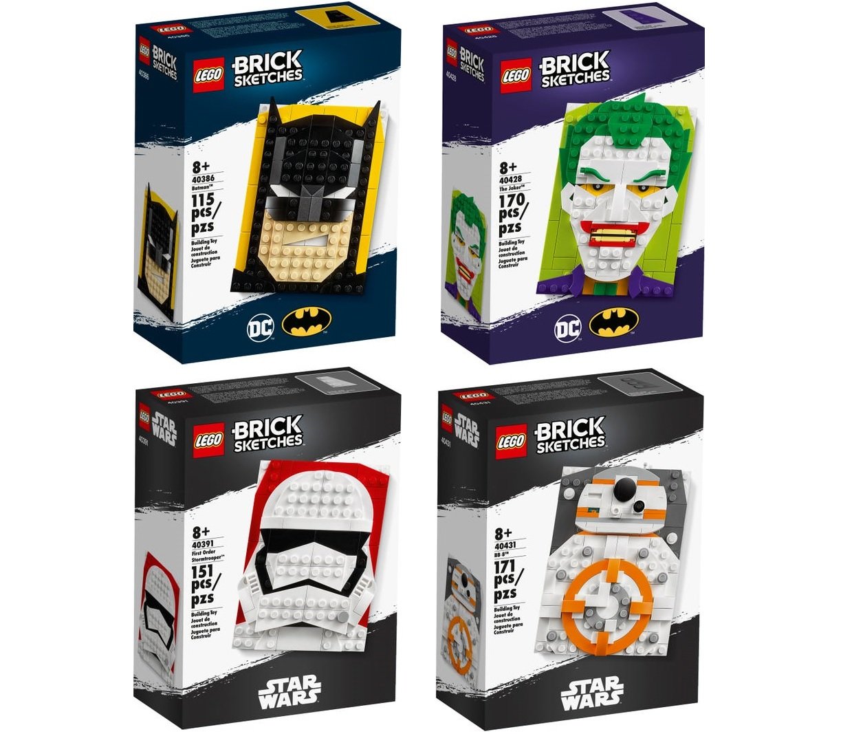 Los nuevos juegos de LEGO Brick Sketches ya están disponibles en la página de Internet de LEGO México. En esta primera ola, hay cuatro sets con dos perteneciendo al universo de DC Comics y dos del universo de Star Wars. Cada set tiene un precio de $449 MXN. Recuerda que aún está disponible el set de regalo-con-compra de LEGO Diversión Creativa 12-en-1 (40411) en la compra de $1,750 MXN o más.
