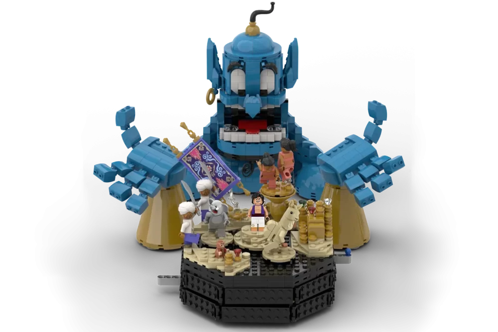 El proyecto de Aladdin: Friend Like Me (30th Anniversary Special) por el diseñador Lud985 es el último en alcanzar los 10,000 seguidores en LEGO Ideas. La construcción de 1,580 piezas recrea la escena de la canción del Genio en la película animada. Como pieza principal, está el Genio hecho de blocks de LEGO con la boca y las manos movibles. El escenario rota para ambos lados. También, incluye ocho minifiguras, entre ellas la de Aladdin.