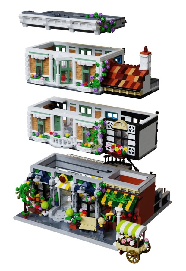 El proyecto de Bricks & Blooms por el diseñador Bricked1980 el proyecto más reciente en conseguir los 10,000 seguidores en LEGO Ideas. Este proyecto está diseñado para conectar con el resto de los juegos de LEGO de estilo modular. Se diseñó con 2,587 piezas, construyendo tres niveles para incluir un centro de jardinería, un café-restaurante y un departamento acuático. El diseñador propone complementar este set de LEGO con seis minifiguras humanas y una de un gato.