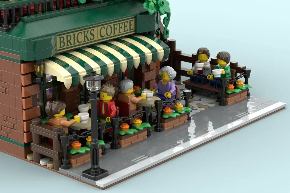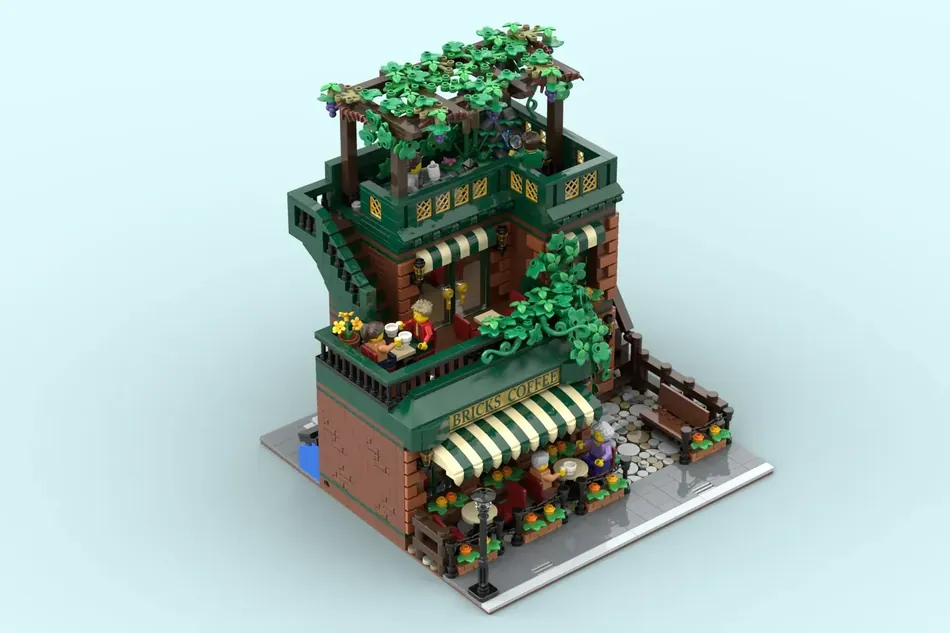 El proyecto de Brick Coffee por el diseñador UTAMARU_BRICK8 es el último en alcanzar los 10,000 seguidores en LEGO Ideas. La construcción es de un edificio de dos pisos con un cafecito y un jardín trasero.