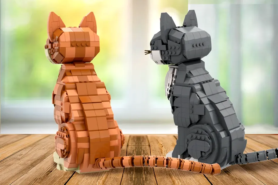 El proyecto de LEGO Cats por el diseñador legotruman es el último en alcanzar los 10,000 seguidores en LEGO Ideas. La construcción de 1,485 piezas recrea dos gatos, uno gris y uno naranja. Ambos gatos tienen articulaciones en sus cabezas y colas, para que puedas posarlos como quieras.