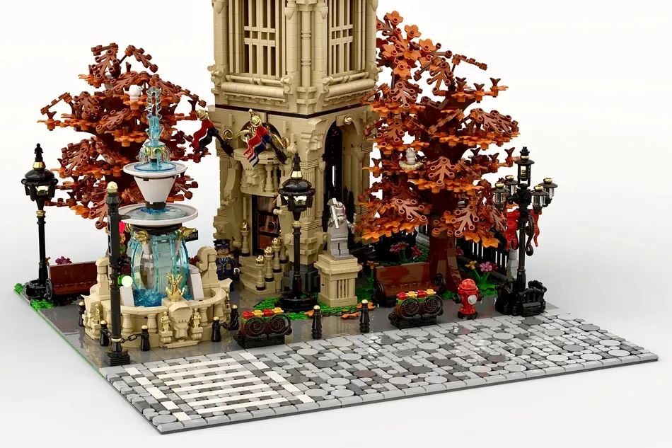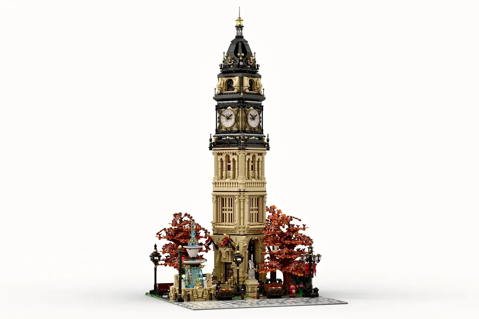 El proyecto de Clock Tower Park por el diseñador Jiwoo es el último en alcanzar los 10,000 seguidores en LEGO Ideas. La construcción recrea un pequeño parque con una torre en medio. Tiene demasiados detalles en la estructura y en el área del parque.