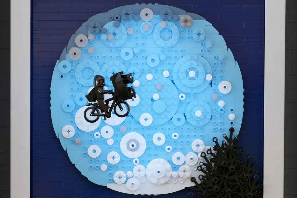 El proyecto de E.T. The Extra-Terrestrial por el diseñador Brickester es el último en alcanzar los 10,000 seguidores en LEGO Ideas. La construcción de 1,550 piezas recrea el poster de la película de E.T. cuando Elliot y E.T. vuelan en la bicicleta con la luna llena detrás.