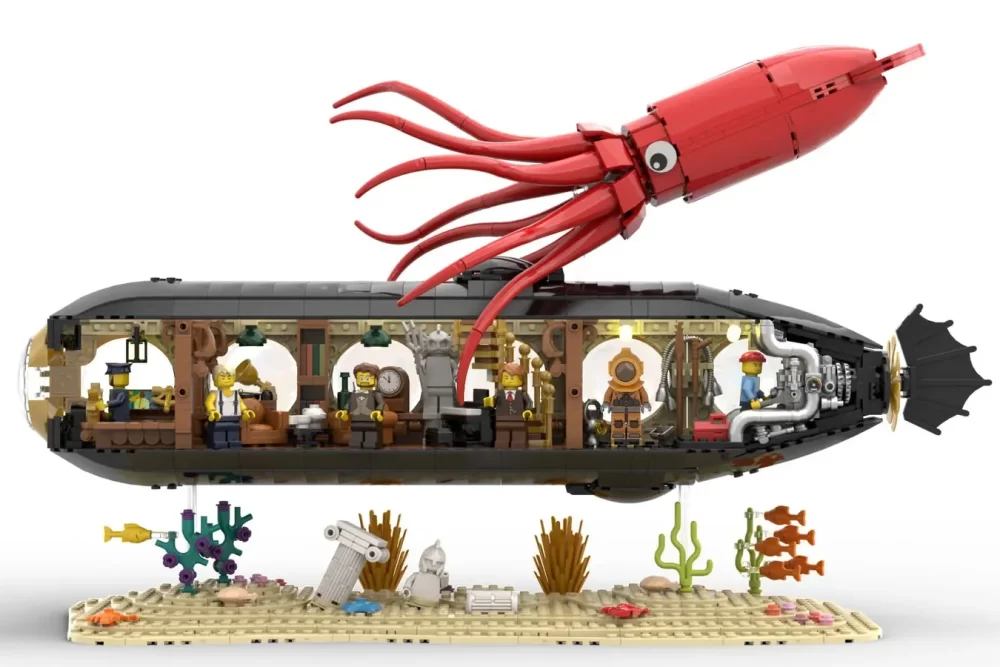 El proyecto de Jules Verne’s Nautilus por el diseñador Seb_E es el último en alcanzar los 10,000 seguidores en LEGO Ideas. La construcción de 1,753 piezas recrea el submarino Nautilus de Twenty Thousand Leagues Under the Seas. También, se incluye un calamar gigante y las minifiguras de Capitán Nemo, Professor Aronnax, Ned Land, Conseil, y el First Mate.
