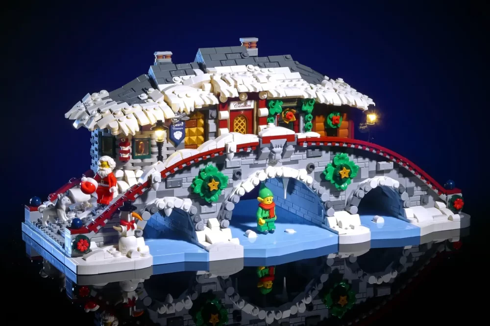 El proyecto de Magical Village Over the Bridge por el diseñador Lepralego es el último en alcanzar los 10,000 seguidores en LEGO Ideas. La construcción de 2,100 piezas recrea una escena navideña en un puente. Además, se proponen las minifiguras de Santa Claus y dos duendes.