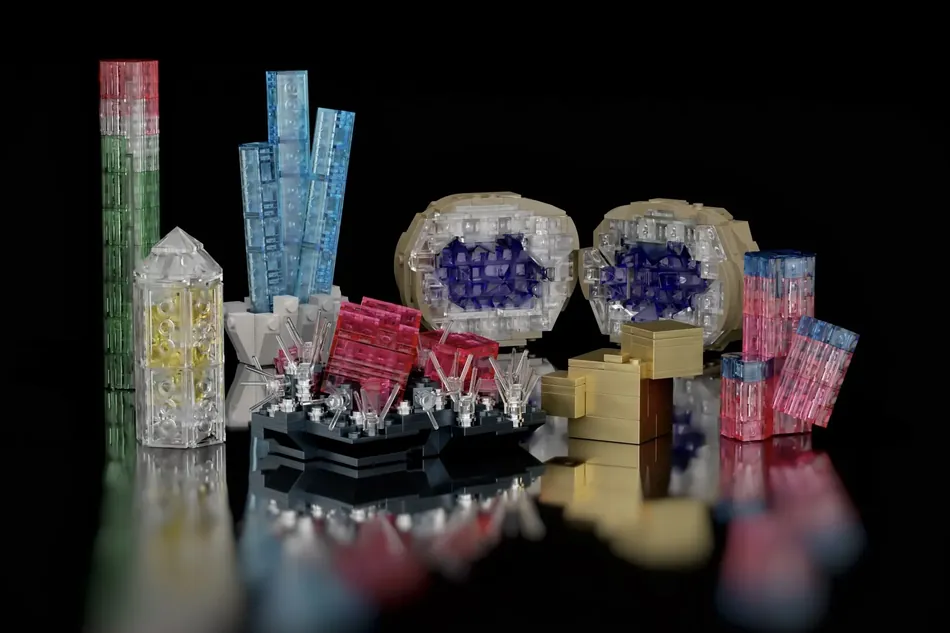 El proyecto de LEGO Minerals por el diseñador ddf72 es el último en alcanzar los 10,000 seguidores en LEGO Ideas. La construcción es en escala de 1:1 de varios minerales. Estos minerales incluyen berilo aguamarina, geoda de amatista, pirita, rodocrosita, cuarzo, berilo rojo y 4 turmalinas diferentes.