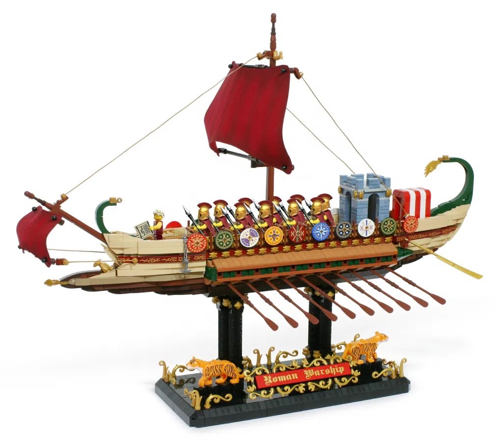 El proyecto de Roman Warship por Iyan Ha es el más reciente en conseguir los 10,000 seguidores en LEGO Ideas. Para este proyecto, Iyan se inspira en los barcos romanos de guerra y recrea este modelo de LEGO detallado e histórico. Además del barco, incluye las minifiguras de un emperador y soldados romanos. Todas estas minifiguras las puedes encontrar en las series de minifiguras coleccionables de LEGO.
