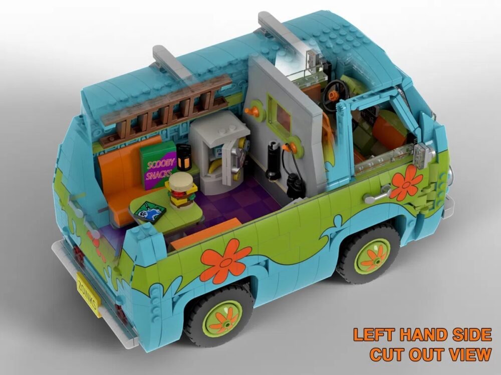 El proyecto de Scooby Doo Mystery Machine por Let Them Fly es el más reciente en conseguir los 10,000 seguidores en LEGO Ideas. La construcción recrea a grande escala el icónico vehículo de la caricatura de Scooby Doo. Incluye una plataforma giratoria para poder apreciar la camioneta de todos los ángulos. Este proyecto está compuesto de 1,969 piezas, mismo año en el que debutó la famosa serie de televisión.