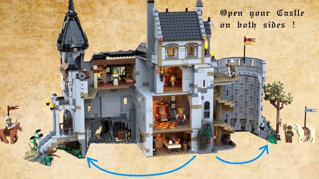 El proyecto de Castle of Brickwood Forest por poVoq es el más reciente en conseguir los 10,000 seguidores en LEGO Ideas. La construcción del castillo está hecha de 3,000 piezas y está lleno de detalles que puedes apreciar al abrir el set por atrás. Además, se proponen ocho minifiguras: un caballero, dos soldados, dos aldeanos, el rey, la reina y la princesa.