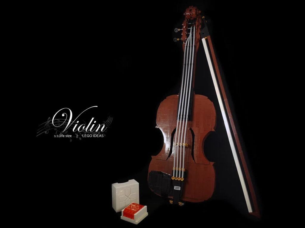El proyecto de Violin por SAMUEL HO es el más reciente en conseguir los 10,000 seguidores en LEGO Ideas. Este es el proyecto número 40 de esta etapa de revisión. La construcción recrea un violín de tamaño real con 1,029 piezas. Usa muchos diferentes elementos para darle las cuevas y detalle al instrumento, usando técnicas también de SNOT.