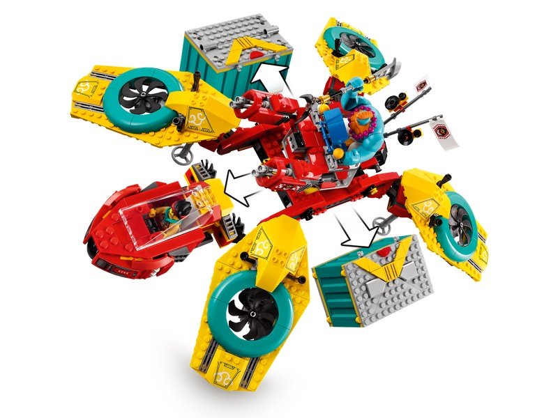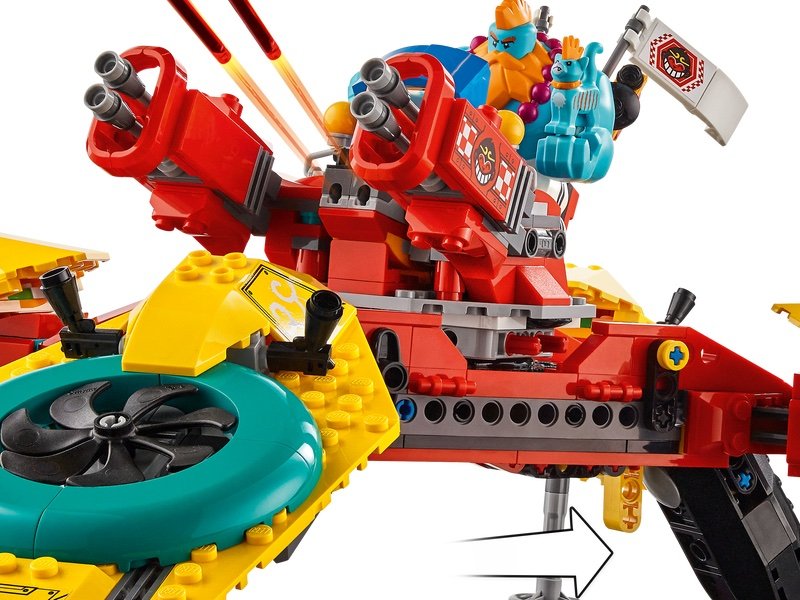 Este set incluye un Droncóptero grande así como un par de contenedores de cargo que tienen características de juego. Será el primer set de LEGO Monkie Kid que tendrá la minifigura de Mr. Tang. Chécate todas las imágenes a continuación: