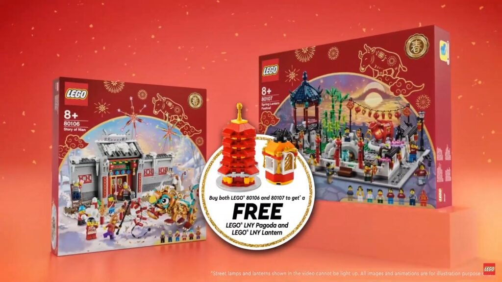 Los juegos de LEGO para celebrar el Año Nuevo Chino 2021 estarán disponible a principios de enero y parece que los fanáticos están emocionados. LEGO ha lanzado un nuevo video mostrando uno de los sets y revelando el regalo-con-compra. Como pueden ver en la imagen de arriba, para obtener la LEGO LNY Pagoda y la LNY Linterna tendrás que comprar ambos sets de Historia de Nian (80106) y Festival de los Faroles de Primavera (80107).