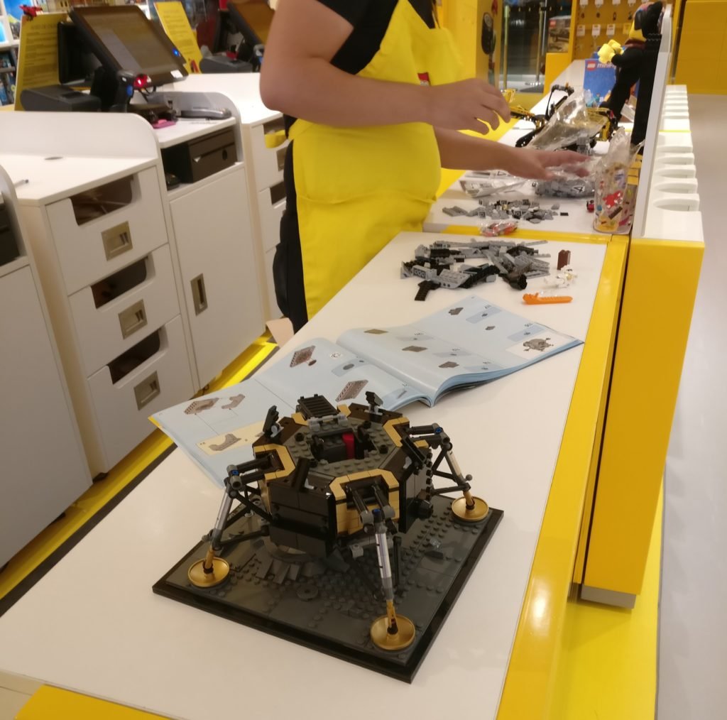 El nuevo LEGO Creator NASA Apollo 11 Lunar Lander (10266) sale mañana y la tienda LEGO de Punto Valle ya empezó a prepararse. Ayer me di la vuelta por la tienda en la tarde y estaban armando el nuevo set para poder exhibirlo el sábado. Pregunté acerca de las promociones que habrá en las tiendas de LEGO México, y parece que habrá poca variación con las promociones en el resto de las tiendas LEGO.