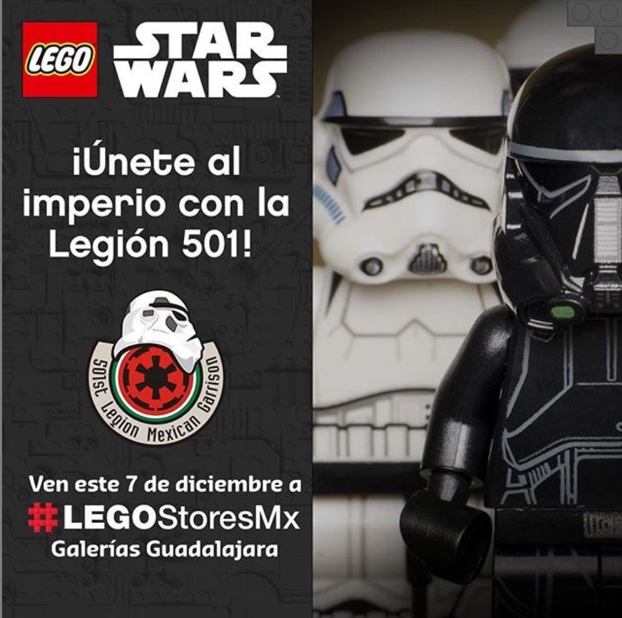 También, habrá un evento especial para este fin de semana. Este sábado, 7 de diciembre, la LEGO Store de Guadalajara tendrá un evento especial de LEGO Star Wars. No hay muchos detalles acerca del evento, lo único que dice el anuncio es que atiendas a la LEGO Store en Galerías Guadalajara para unirte a la Legión 501. Capaz y darán algún regalo especial o exclusivo, así que yo no dudaría en atender.