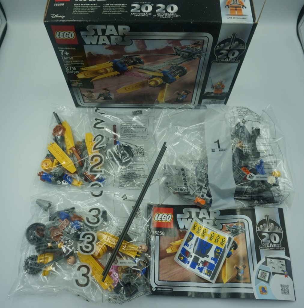Las primeras seis hojas del libro de instrucciones te dan un poco de contexto acerca del set de Pod de Carreras de Anakin (75258) y lo compara con el Pod de Carreras de Anakin (7131) de 1999. El set del 20 aniversario cuenta con más del doble de piezas que el set original, y la minifigura de Anakin la cambiaron de una normal a la de un niño. Las instrucciones empiezan hasta la página 14, empezando a armar la minifigura exclusiva de Luke Skywalker. El libro conteniene 82 páginas (64 de construcción). LEGO te divide la construcción del set en 95 pasos, excluyendo la construcción de las minifiguras.