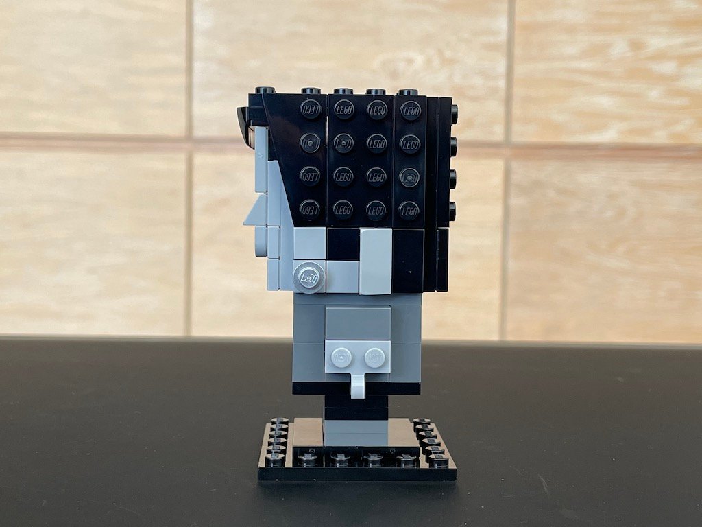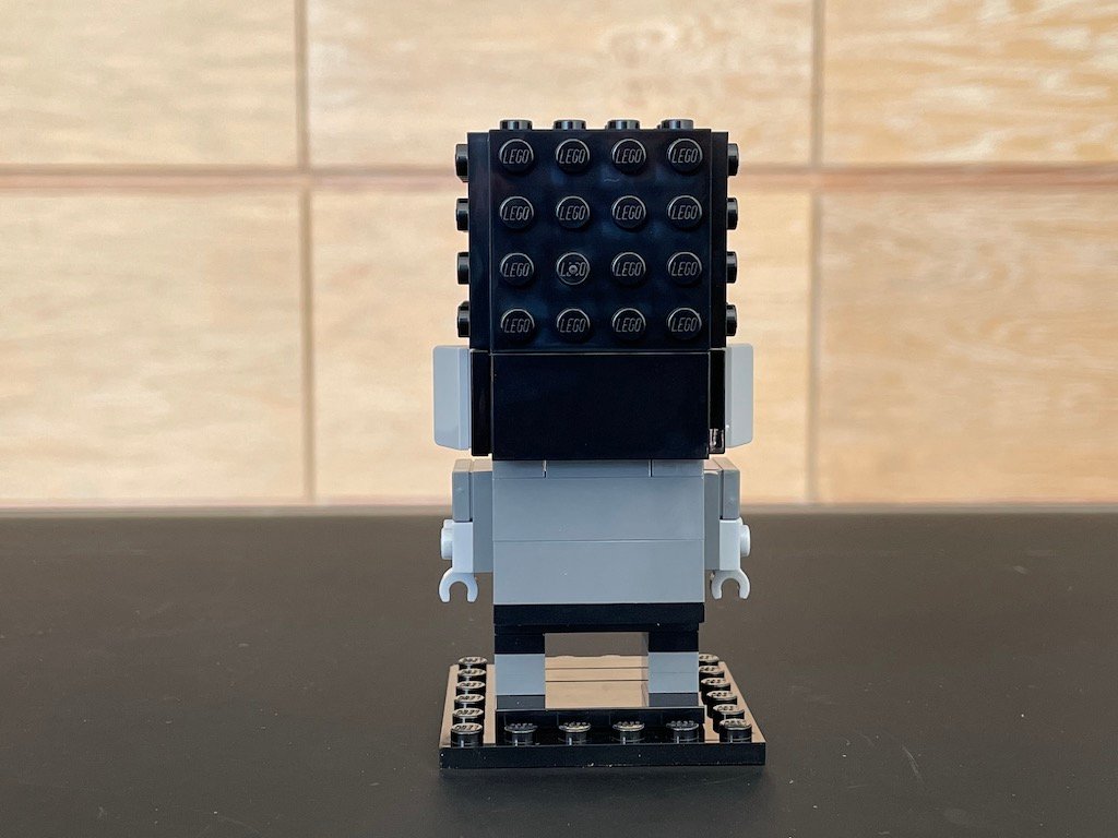 Lo curioso de este LEGO BrickHeadz es que es de un día festivo, pero no cuenta con su base extendida con decoraciones laterales. No sé si esto se dio porque LEGO tuvo que comprar la licencia de Universal o qué, pero si me decepcionó un poco. Como puedes ver en la foto de abajo, está bastante sencilla la construcción, la espalda y nuca del BrickHeadz no tiene nada de interesante.