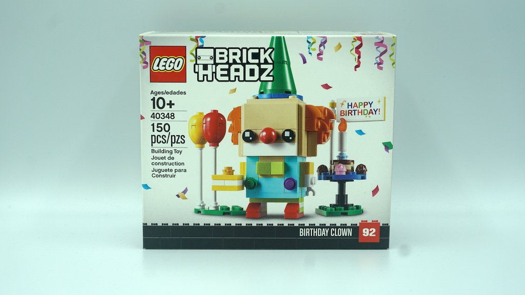 La caja de este LEGO BrickHeadz es bastante distinta a los demás de temporada. Normalmente, los sets de LEGO BrickHeadz de temporada llevan una filigrana decorativa relacionada con la festividad. En cambio, esta caja es toda blanca y está decorada con confeti colorido rodeando al payaso. Este es el BrickHeadz número 92 de la colección, así lo indica el block rojo en la esquina posterior derecha.