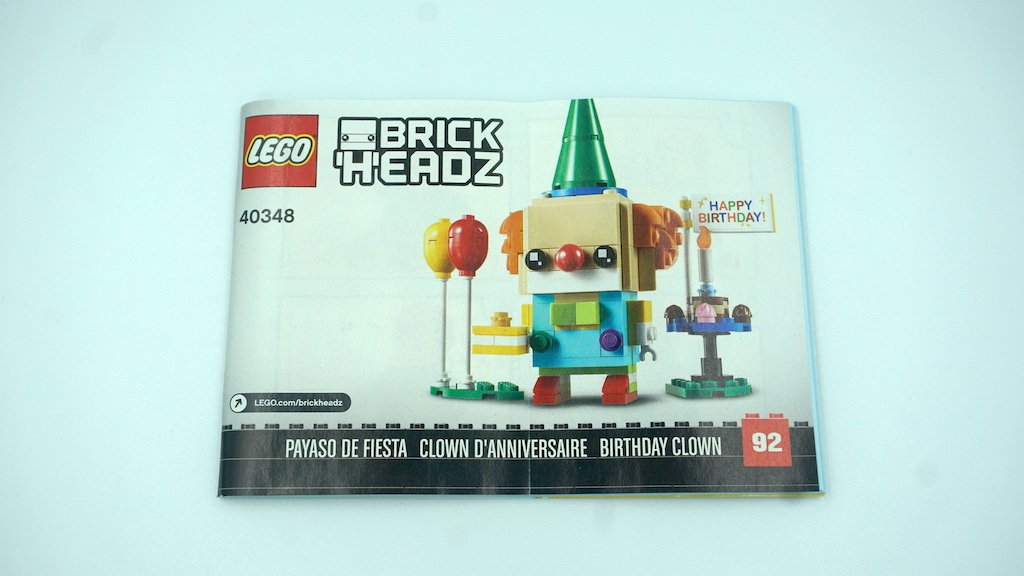 Es raro que los juegos de LEGO BrickHeadz vengan con calcomanías. Dado que LEGO quiso poner Feliz Cumpleaños en muchos lenguajes posibles, incluyó con el instructivo una pequeña hoja de letreros festivos. Creo que el único otro LEGO BrickHeadz que cuenta con una hoja de calcomanías es el de los Reno y Duendes de Navidad (40353). Igual, LEGO hizo las calcomanías para este set navideño para sus letreros. El libro en si tiene 47 páginas, de las cuales 43 son de construcción.