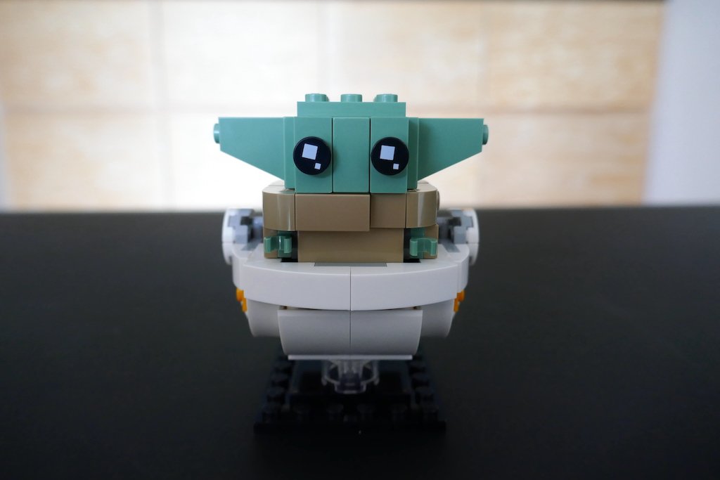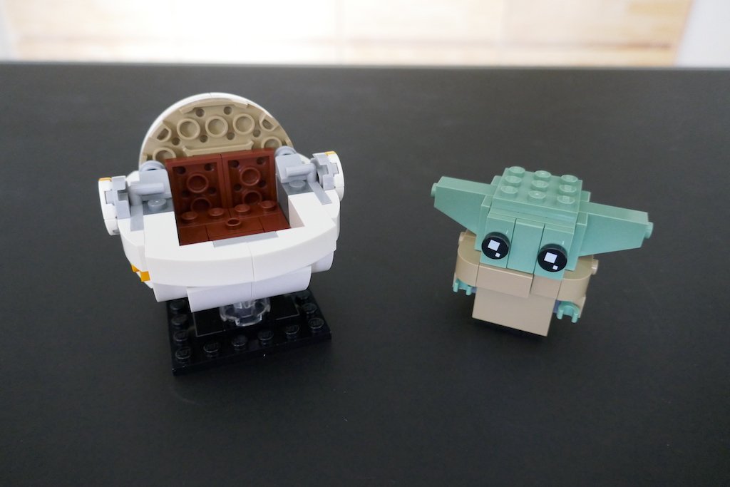 Lo que más disfruté de esta construcción fue la variedad de piezas y figuras que tuvo. No fue una construcción de un LEGO BrickHeadz convencional, ya que el Baby Yoda tiene dos poses y el Mandaloriano tuvo su grado de complejidad. Con Baby Yoda en su cuna, está de la exacta misma altura que el Mandaloriano, pero sin ella pareciera un personaje BrickHeadz pequeño y me gustó que puedes jugar con las diferentes poses.
