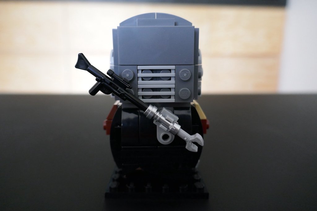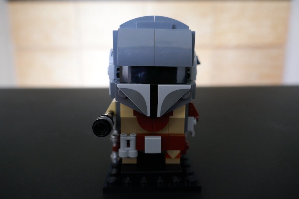 En cuanto al Mandaloriano, LEGO te divide la construcción en 52 pasos y 3 bolsitas. Lo que más me sorprendió de esta construcción fue su complejidad. Fácil pasa a ser el personaje LEGO BrickHeadz más complicado que he armado. Tiene muchas piezas chicas y no tan convencionales para el torso, y esto le da los detalles que se pueden ver en su traje de la serie de televisión. Armar el casco tampoco es cosa fácil como lo es construir las demás cabezas de otros personajes de LEGO BrickHeadz.