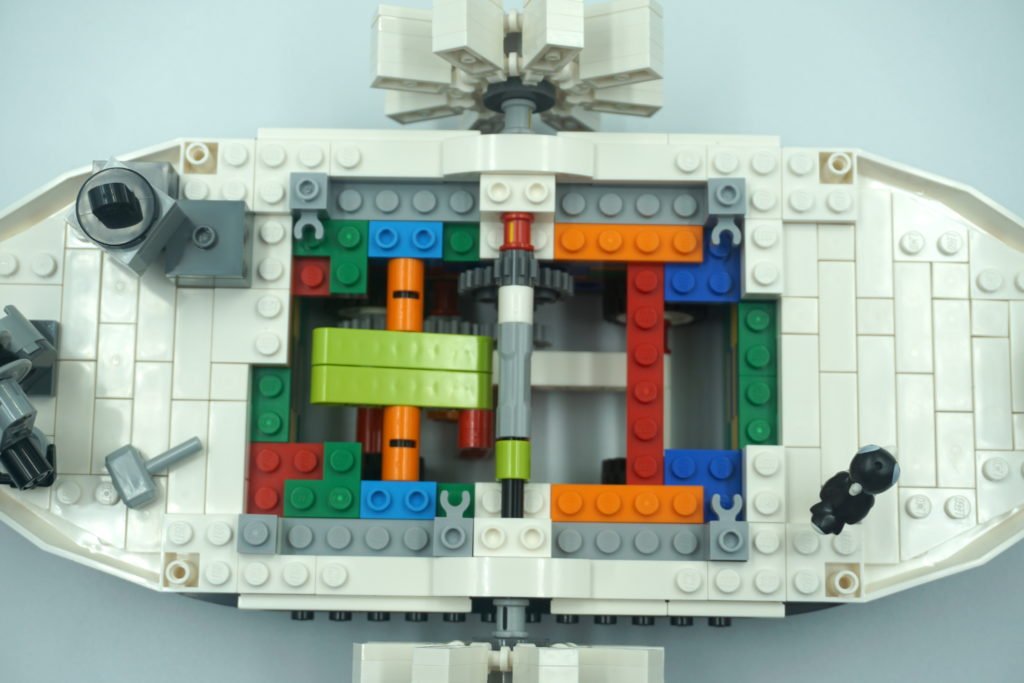 Aunque por fuera parezca que es todo blanco y negro, me sorprendieron muchísimo los interiores. Todo tenía mucho color, cual me agradó bastante ya que era divertido y las piezas eran muy fáciles de identificar. Estuvo muy entretenido armar los diferentes mecanismos del botero para que, mientras avanza el botero bajo llantas, las ruedas de paletas giran en ambos lados y las chimeneas de vapor suben y bajan. Aprendí muchísimo acerca de cómo combinar diferentes piezas para lograr movimientos distintos. También, involucró un poco de técnicas de coser, al armar la grúa que tenía su hilo para levantar las cajas de papa.