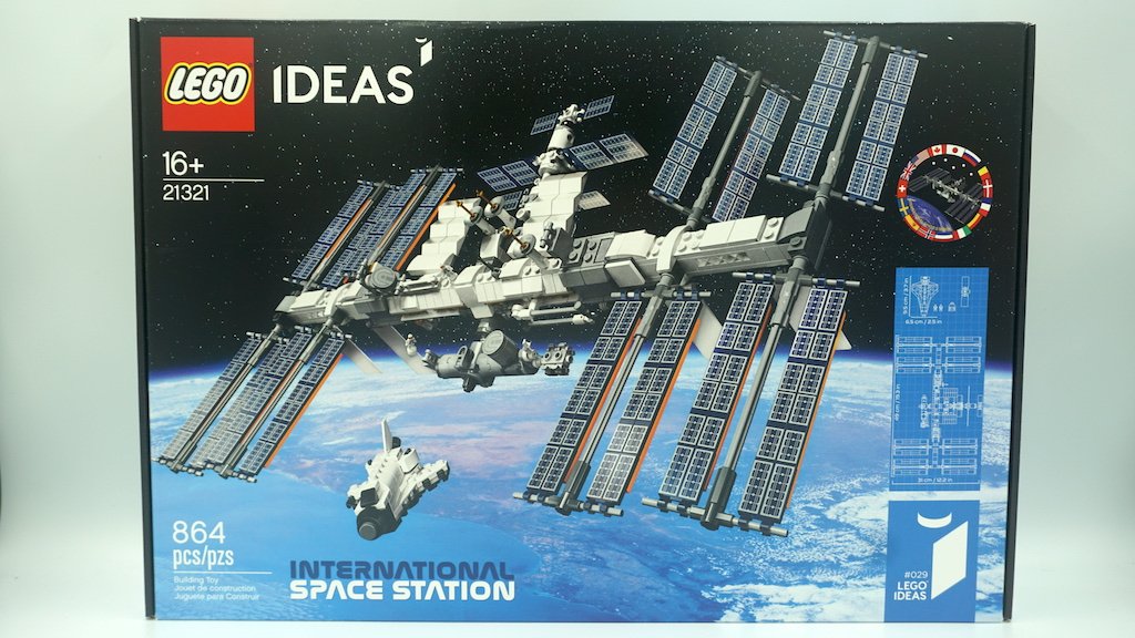 El frente de la caja tiene un fondo artístico espectacular. La Estación Espacia Internacional (EEI) sale orbitando nuestro planeta y parece que el cohete va llevando a varios de los astronautas devuelta a casa. Del lado derecho se puede observar el logotipo de la EEI, que incluye las banderas de todos los países que contribuyeron a su desarrollo. Abajo del logo, están las medidas de los diferentes componentes del set. Por último, el logotipo de LEGO Ideas está en la esquina de abajo derecha, indicando que éste es el set número 29 de este tema tan popular entre los fans.