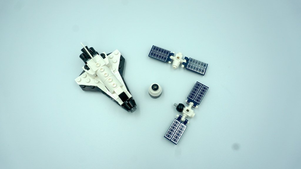 Las mini construcciones que haces al principio se complementan muy bien con la totalidad del juego de LEGO. Tanto la nave como los satélites son más que nada para mostrar la magnitud de la EEI y también sirven para decorar la base de exhibición. Estas pequeñas construcciones, en conjunto con las microfiguras, le añaden características de juego al set también.