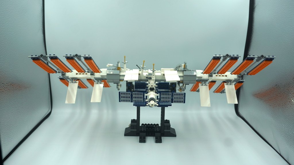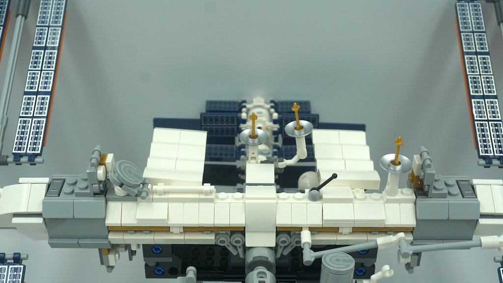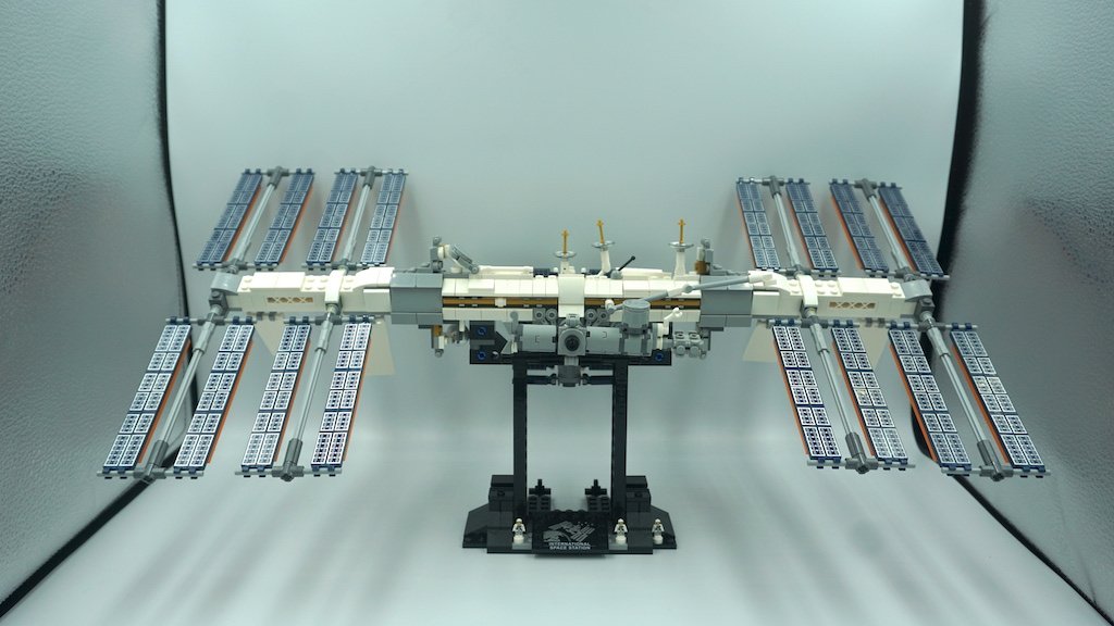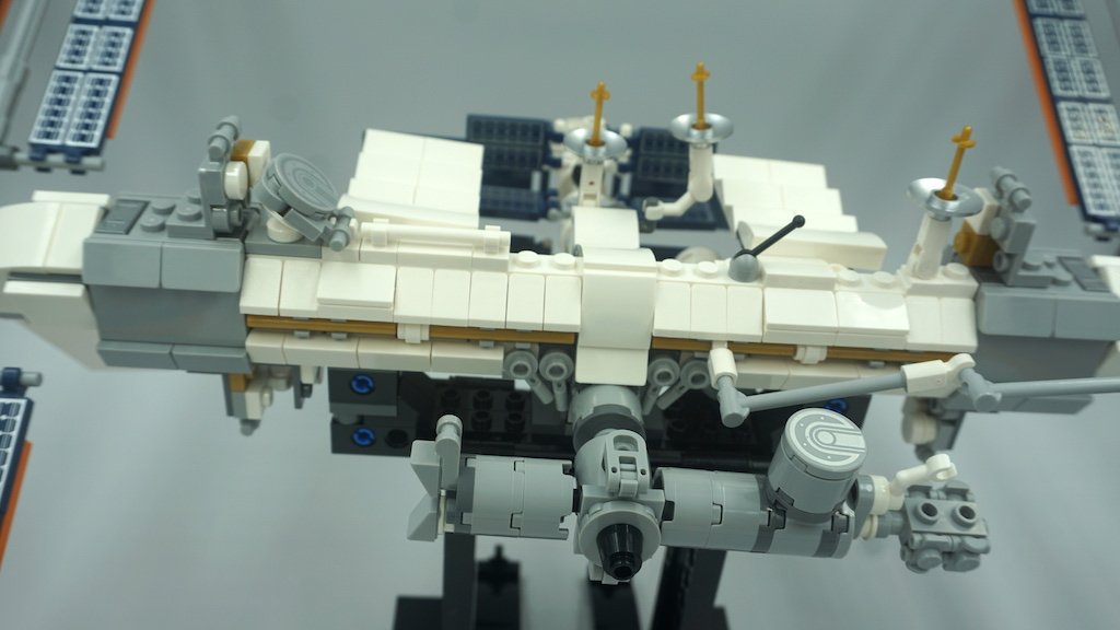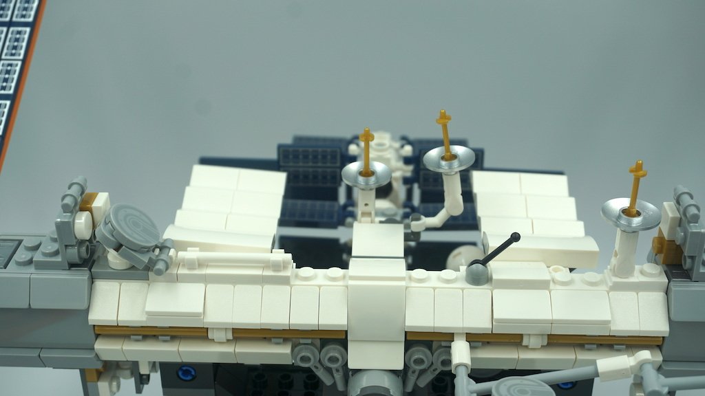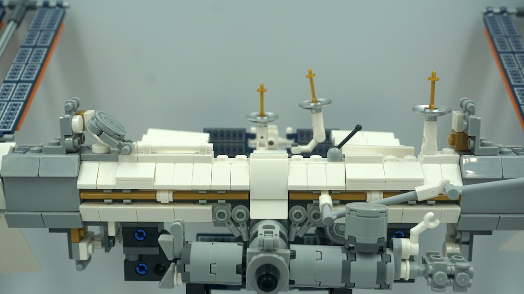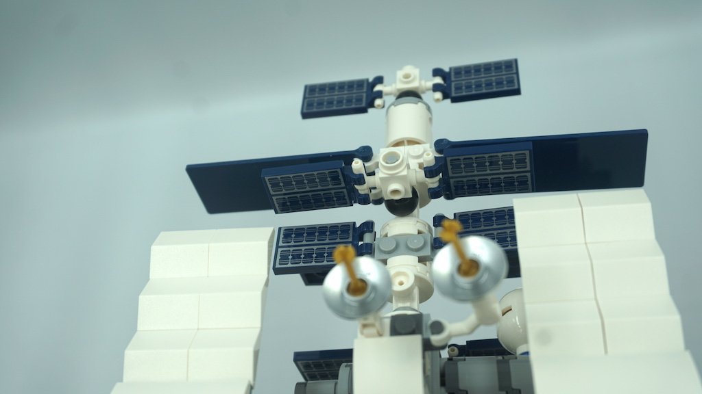 Como pueden ver, el producto terminado de este set es inmenso. Es tan grande que no me cupo en mi caja de fotografía. Me gustó el hecho de que no tuvo ninguna sola calcomanía, y eso que LEGO tuvo muchas oportunidades para incluirlas. En vez, LEGO optó por incluir piezas impresas para los páneles solares y en la placa de la base. La EEI tiene bastantes piezas movibles y puedes ajustar los ángulos de los páneles, las antenas y satélites. En si, tiene mucho detalle que se logra en piezas pequeñas para darle textura y vida al set.