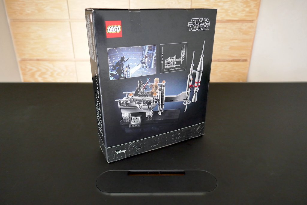 Este set de colección está categorizado para adultos y lleva el empaque nuevo para este tipo de set. Se ve elegante la portada de la caja con el fondo negro y la escena emblemática de Star Wars recreada en LEGO. Es justo en este momento que Darth Vader le revela a Luke que es su padre, y así mismo lo plasma LEGO en la portada.