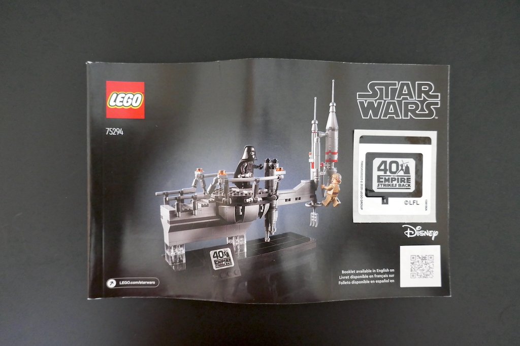Además del libro de instrucciones, también te incluye una calcomanía de los 40 años del debut de la película del Imperio Contraataca. El instructivo comienza por una breve carta dirigida a los fans por Jens Kronvold Frederiksen, director creativo de LEGO Star Wars. La carta está en inglés y traducida en español y francés.