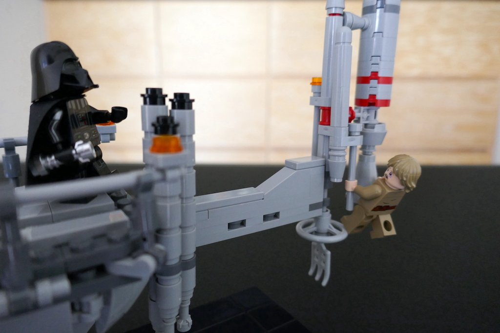 LEGO te divide la construcción en tres bolsas numeradas. La primera se encarga de construir la base y el sustento de la plataforma. Seguido por la bolsa número 2, donde se construye mayormente la plataforma y la minifigura de Darth Vader. Por último, la tercera y última bolsa se encarga de la minifigura de Luke y de finalizar los detalles de la plataforma y del lugar donde Luke se cuelga. En total, son 105 pasos para completar la construcción.