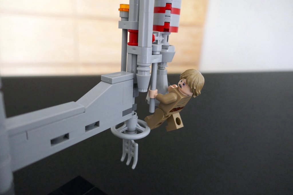 La plataforma en si es muy delicada al concluir su construcción. No creo que hayan usado los mejores métodos de construcción al diseñar este set ya que fácilmente se caen las piezas, especialmente donde se cuelga Luke. La plataforma si está bastante robusta, pero los detalles igual, se pueden despedazar con una simple sacudida.