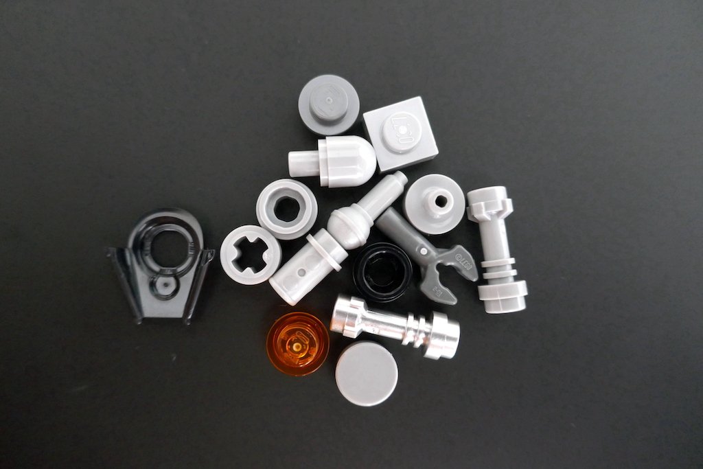 El color gris predomina en este set y así se ve reflejado en las piezas sobrantes. Tenemos dos lightsabers extra así como la parte de abajo del casco de Darth Vader además de las piezas grises. Dado que se usan muchas piezas chicas en la construcción, me sorprendió que fueron pocas piezas sobrantes.