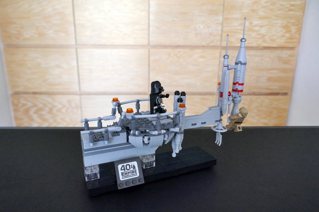 LEGO te divide la construcción en tres bolsas numeradas. La primera se encarga de construir la base y el sustento de la plataforma. Seguido por la bolsa número 2, donde se construye mayormente la plataforma y la minifigura de Darth Vader. Por último, la tercera y última bolsa se encarga de la minifigura de Luke y de finalizar los detalles de la plataforma y del lugar donde Luke se cuelga. En total, son 105 pasos para completar la construcción.