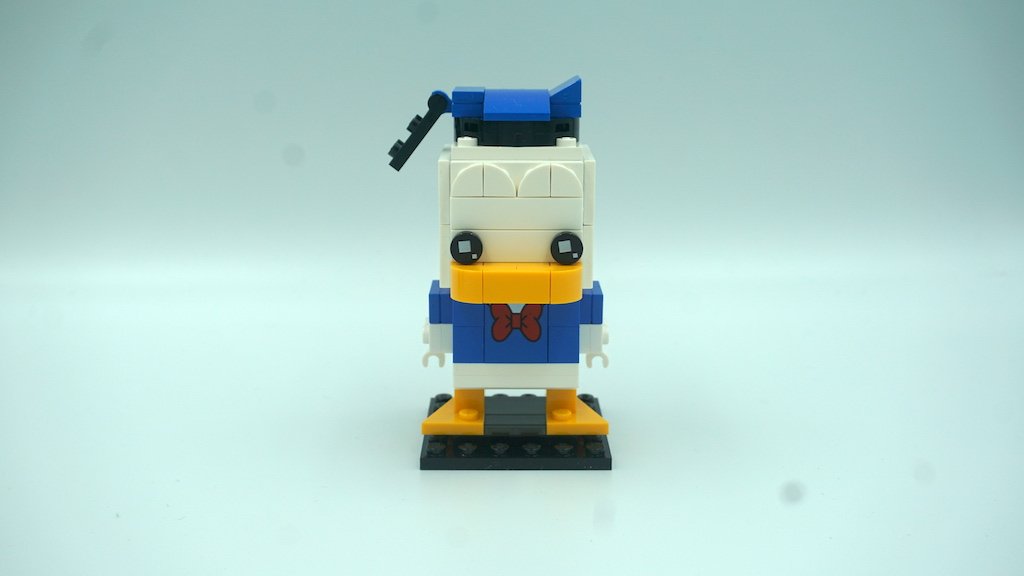 El Pato Donald está compuesto de solamente 90 piezas. Como lo mencioné arriba, la construcción fue bastante rápida y también se ve reflejado con el hecho de que LEGO te divide su construcción en solamente 32 pasos. Comparando el número de pasos con Goofy y Pluto, la complejidad del Pato Donald está más cerca de Pluto que de Goofy. La mayoría de las piezas fueron mayores a placas de 1×2, y creo que por esto fue que la construcción es más corta y rápida.