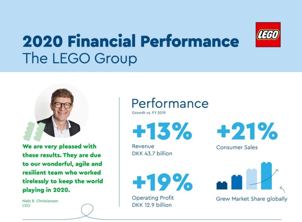 Hace unas horas, LEGO publicó sus resultados anuales del 2020. Con pandemia encima, LEGO registró un crecimiento sólido. Aquí te comparto los puntos principales: