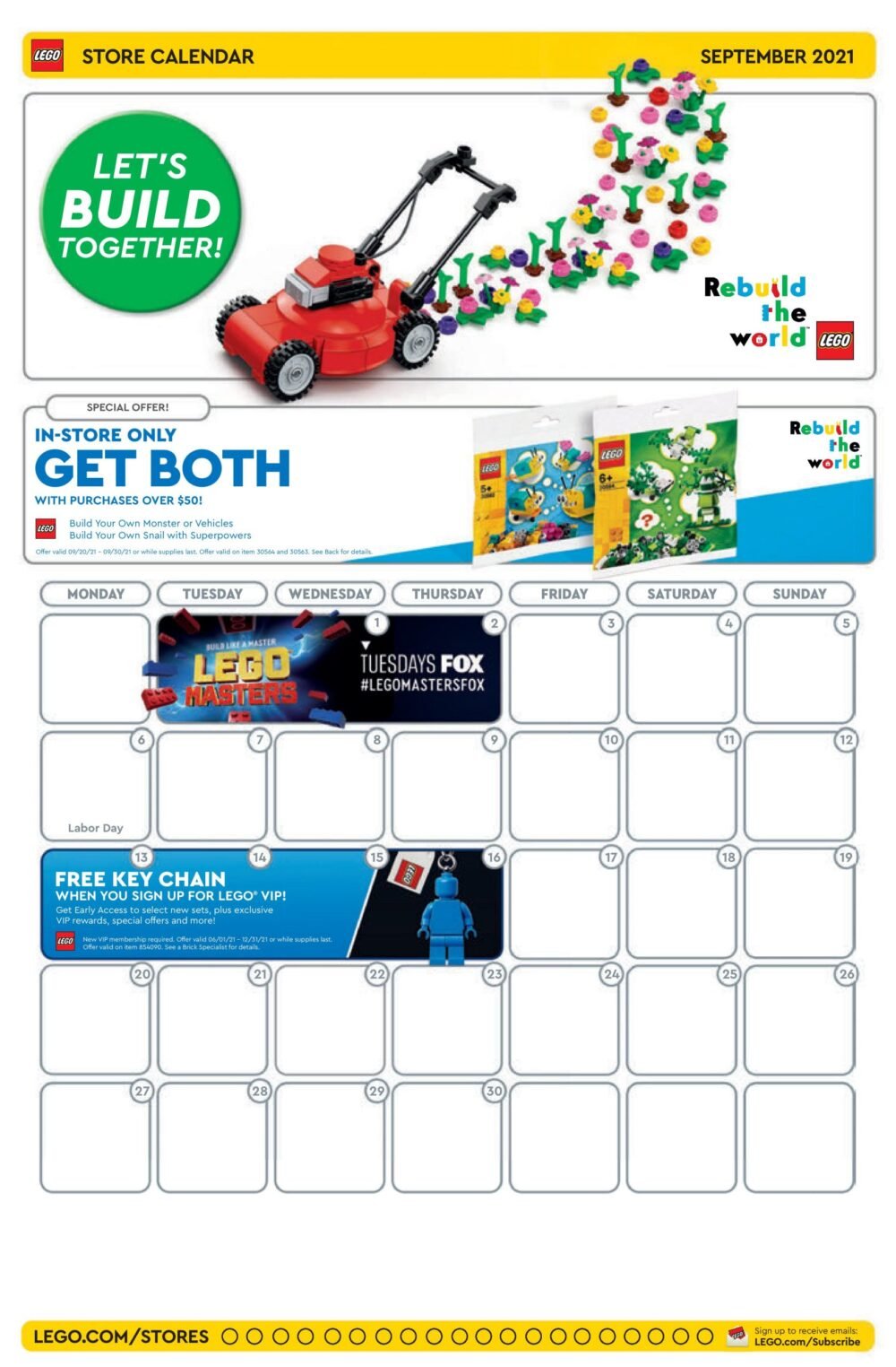 Ayer les hice llegar el calendario de las LEGO Stores de septiembre 2021. Como lo comenté en el artículo, muy decepcionante con la cantidad de promociones para el mes que entra. Afortunadamente, habrán más promociones de las que están publicadas en el calendario.