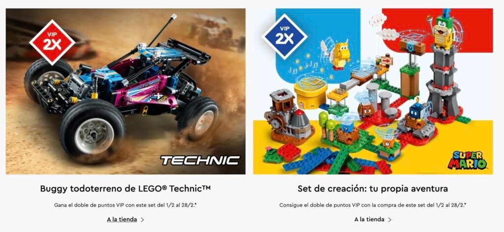 Hay algunos sets nuevos que han estado rotando en cuanto lo que otorgan de puntos LEGO VIP este inicio de año. Para febrero, le toca al LEGO Technic Buggy Todoterreno (42124) que en su compra te otorgará 2,030 puntos. El otro set de promoción es el LEGO Super Mario Set de Creación: Tu propia aventura (71380) que en su compra te otorgará 1,050 puntos. La promoción será válida hasta el 28 de febrero.