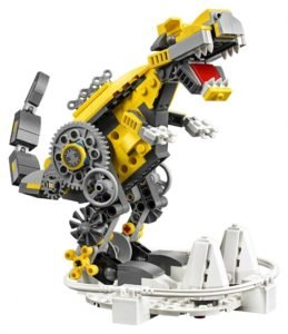 Designer Nina Koopman says: ”One of the biggest challenges with the new model has been to capture all the details from the big models. Especially since the models in Masterpiece Gallery were all built of the three different building systems LEGO DUPLO, LEGO Technic and LEGO System. You see it especially with the yellow dino where we eg. have used gear wheels, and ventilator elements to get the “Technic feel” into the product.”