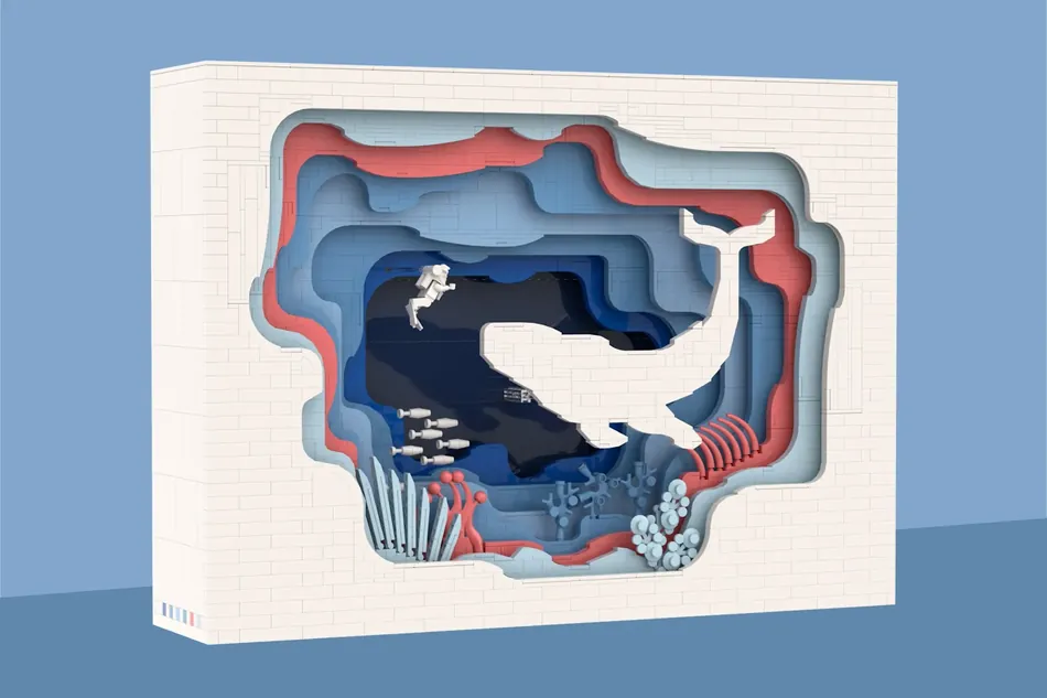 El proyecto de Humpback Whale por el diseñador Les Briques de Loïc es el último en alcanzar los 10,000 seguidores en LEGO Ideas. La construcción de 2,000 piezas hace una imagen inspirada en el arte de cortar papel. También, incluye una minifigura de un buzo. una tortuga bebé que cuenta con movimientos de nadar usando una palanca.