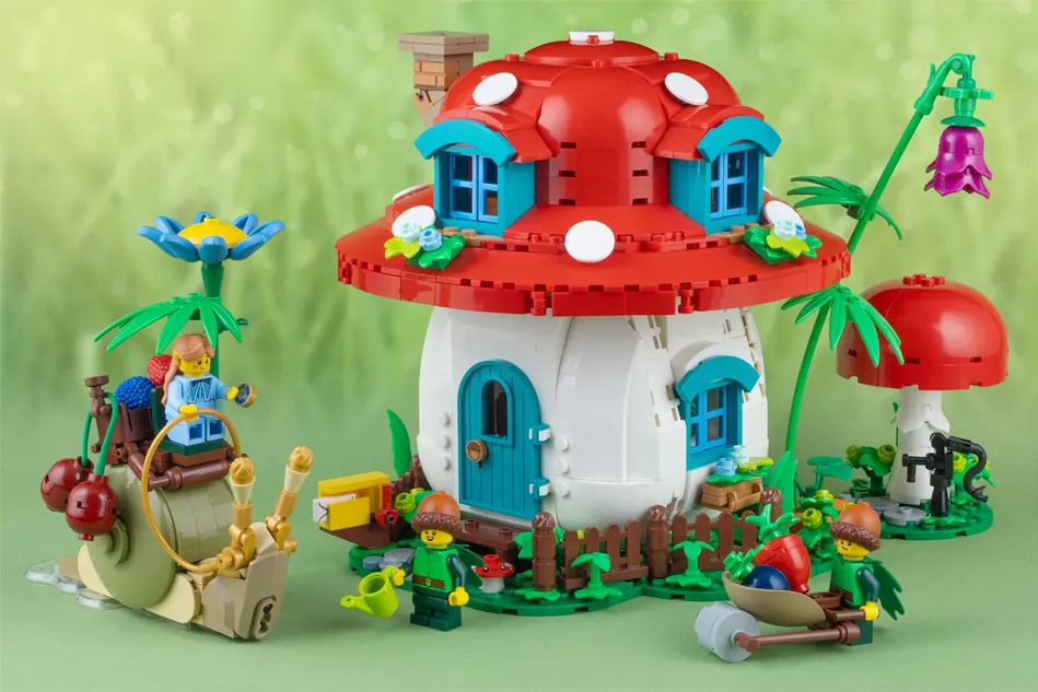 El proyecto de LEGO Mushroom House por el diseñador JonasKramm es el último en alcanzar los 10,000 seguidores en LEGO Ideas. La construcción de 1,100 piezas hace una casa en forma de un hongo. Se puede abrir la casa para mostrar los detalles interiores. También, se incluye una minifigura con su caracol transportador.