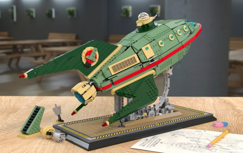 La nave espacial está basada en la popular serie animada llamada Futurama y el proyecto propone la nave con su base que se transforma en su plataforma de lanzamiento. Si se aprueba, este set tendría poco menos de tres mil piezas. Curiosamente, este proyecto no propone ninguna minifigura, aunque deja la posibiliadad abierta al tener suficiente espacio para sentar a tres personajes.