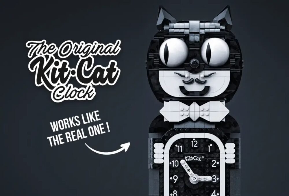 El proyecto de Kit-Cat Clock por el diseñador Mukkinn es el último en alcanzar los 10,000 seguidores en LEGO Ideas. La construcción de 1,300 piezas está basada en un reloj old school que cuenta con mecanismos para mover la cola y los ojos.