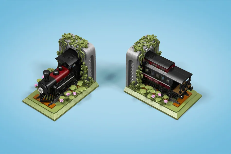 El proyecto de Train Bookends por el diseñador Jimmi-DK es el último en alcanzar los 10,000 seguidores en LEGO Ideas. La construcción de 1,038 piezas trata de un tren entrando a un túnel para sostener libros de por medio.