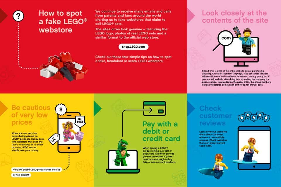 Con más gente comprando en línea este año, hay más probabilidad de que salgan estafadas en sitios web de LEGO falsos. Lo único que buscan estos sitios es robarte tu información de tarjeta de crédito. LEGO ha lanzado una campaña para enseñarle a sus clientes cómo identificar una LEGO webstore falsa. Gente como nosotros, que llevamos mucho tiempo en el hobby de armar LEGO, pudiera estar muy de más esta información. Hay muchos fans que LEGO ha ganado en esta cuarentena que pudieran ser el blanco perfecto para estos estafadores.