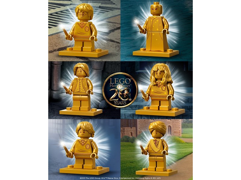 Hace unas cuantas semanas, les platiqué acerca de los rumores rondeando los juegos de LEGO Harry Potter para el verano 2021. Si recuerdan, varios de ellos incluían minifiguras coleccionables doradas para celebrar el vigésimo aniversario del tema. Parece que este rumor ya está confirmado, ya que Wizarding World y LEGO publicaron imágenes en sus redes sociales mostrando las seis minifiguras doradas. Éstas son de los personajes Harry Potter, Voldemort, Severus Snape, Hermione Granger, Ron Weasley, y Profesor Quirrell.