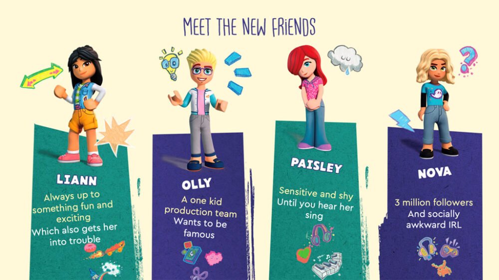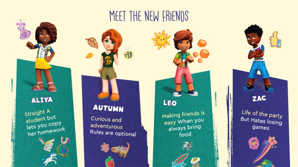 LEGO ha revelado la próxima generación de LEGO Friends reinventando un poco el tema el siguiente año. En esta nueva generación, LEGO presentó ocho nuevos personajes diversos y representativos del mundo real. Estos nuevos personajes son diversos en género, cultura, etnia, rasgos y habilidades físicas, discapacidades no visibles y neurodivergencia.